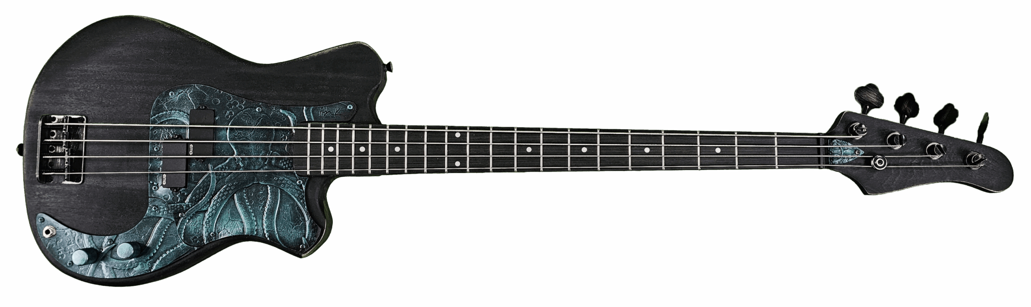 This is the Genesis incarnation of the Basscaster, built for the Sparrows Eat Crows bassist to dominate both live shows and studio sessions. Armed with roaring active EMG P-Bass pickups, this beast is a sonic weapon, delivering a thunderous punch whether clean or driven. Its tone cuts through with authority, filling any environment with power and presence. Proudly bearing the Ink Guitar Kraken, the Octobass is both beauty and beast—a masterpiece of design and destruction.